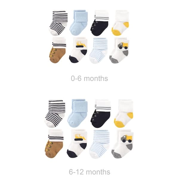 Luvable Friends Infant Boy Grow with Me Cotton Terry Socks, Yellow Bulldozer, 0-6 and 6-12 Months - Bulldozer 16-Pack
